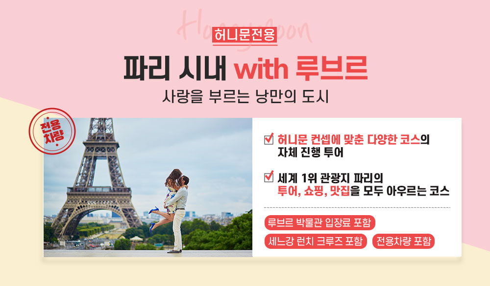 - 현지에서는 일정 및 항공 스케줄에 맞추어 다른 일정의 손님들과 조인하여 행사하게 되며, 지역에 따라 허니문 전용 투어 또는 워킹 조인투어 등의 형태로 진행됩니다.(해당 일정표 상에 명시)